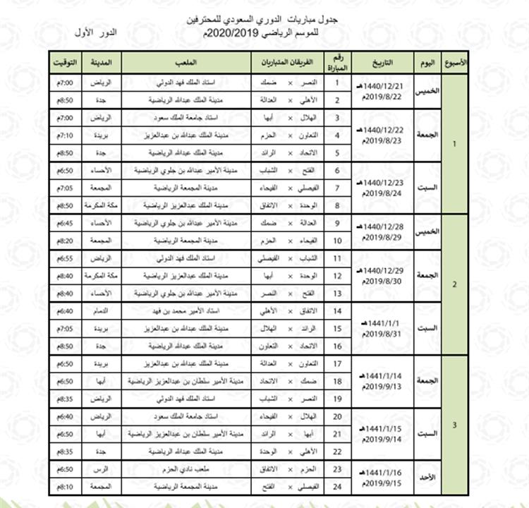 جدول ترتيب الدوري السعودي بعد نهاية مباريات ال�